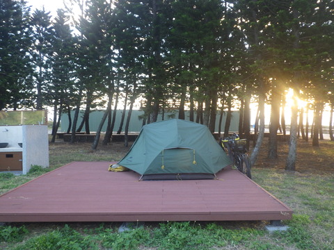 台湾19日目 公園〜台北から南に約260km 台東の町 日が差す方向に林が遮るようテント配置してたので、朝になっても割と涼しく快適だった。こ···